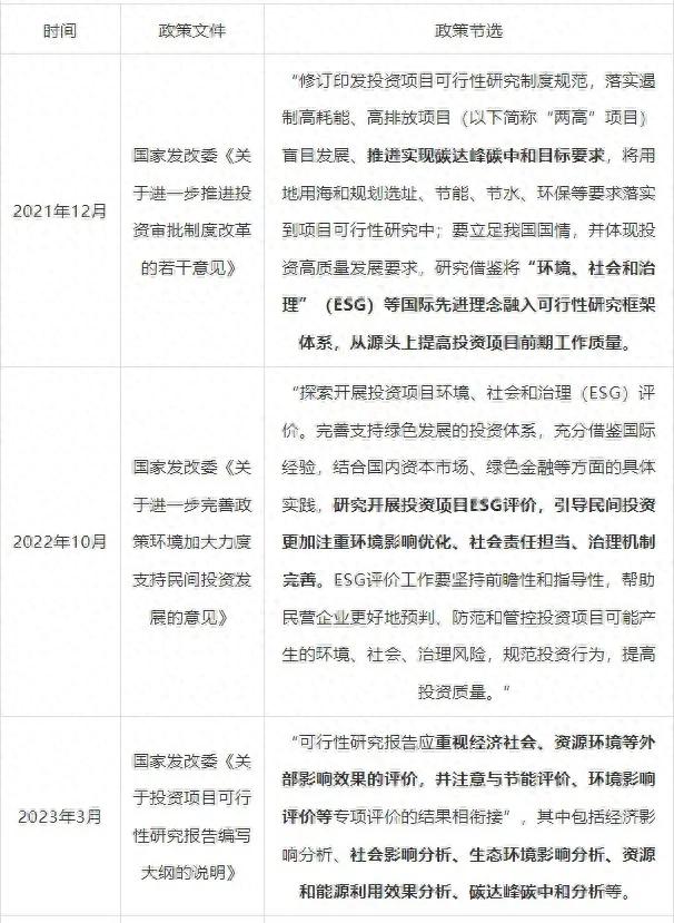 表:基礎(chǔ)設(shè)施投資項(xiàng)目ESG評(píng)價(jià)相關(guān)政策