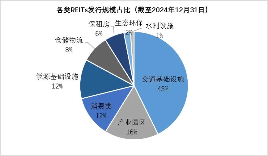基金管理人通過REITs可以動(dòng)員更多的社會(huì)資本參與到清潔能源項(xiàng)目的投資和建設(shè)中,加速能源結(jié)構(gòu)的優(yōu)化和低碳技術(shù)的推廣應(yīng)用。截至2024年12月底,以清潔能源基礎(chǔ)設(shè)施為底層項(xiàng)目的能源類基礎(chǔ)設(shè)施共發(fā)行7只,發(fā)行規(guī)模達(dá)188億,占總REITs發(fā)行規(guī)模的12%。