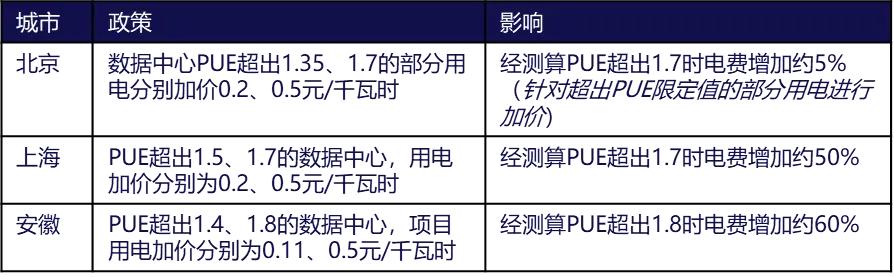 表:各地針對數(shù)據(jù)中心能效階梯電價加價政策的影響
