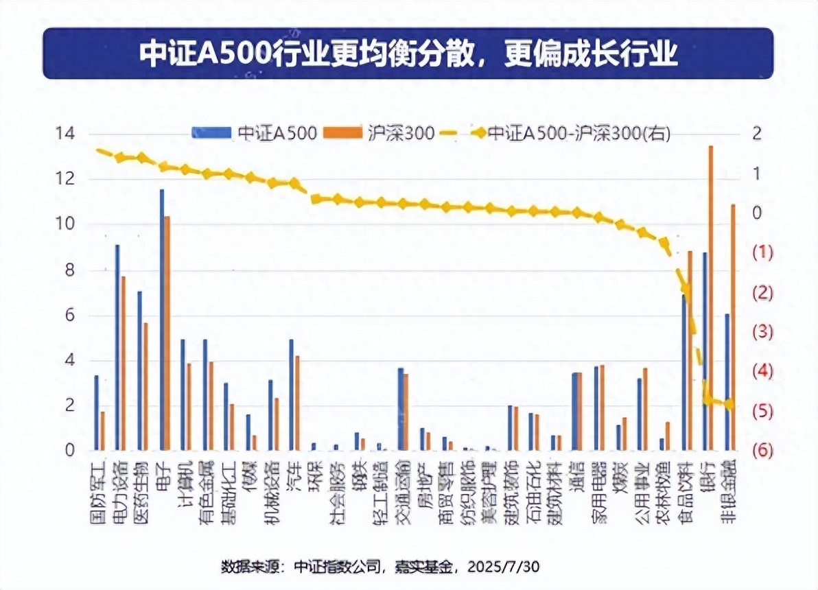 按照指數(shù)編制方法,中證A500指數(shù)從滬深各行業(yè)選取市值較大、流動性較好的500只證券作為指數(shù)樣本,反映全市場各行業(yè)最具代表性上市公司證券的整體表現(xiàn),既覆蓋傳統(tǒng)產(chǎn)業(yè)龍頭,也囊括較高比例的新興產(chǎn)業(yè)領(lǐng)軍者,是全面刻畫中國經(jīng)濟(jì)高質(zhì)量發(fā)展圖景的獨(dú)特標(biāo)識。
