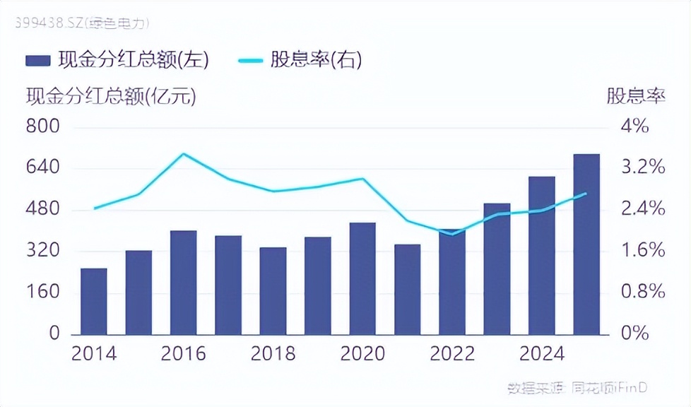 第三、綠色電力指數(shù)當(dāng)前估值處于歷史相對(duì)低位,分紅逐漸走高,中長期投資性價(jià)比突出。根據(jù)iFinD,截至2025年12月17日,綠色電力指數(shù)的PE-TTM為18.69倍,處于歷史23.97%分位。同時(shí),綠色電力指數(shù)過往自然年度現(xiàn)金分紅總額、股息率逐年走高,中長期配置價(jià)值明顯。