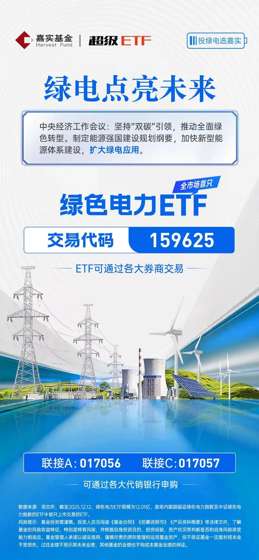 對(duì)于精力有限、風(fēng)險(xiǎn)承受能力和意愿相匹配的投資者,可以關(guān)注一下綠色電力ETF(159625 聯(lián)接A:017056/聯(lián)接C:017057),這是業(yè)內(nèi)首只掛鉤綠色電力指數(shù)的ETF,跟蹤A股市場(chǎng)三大核心電力指數(shù)之一的國證綠色電力指數(shù)(399438)。